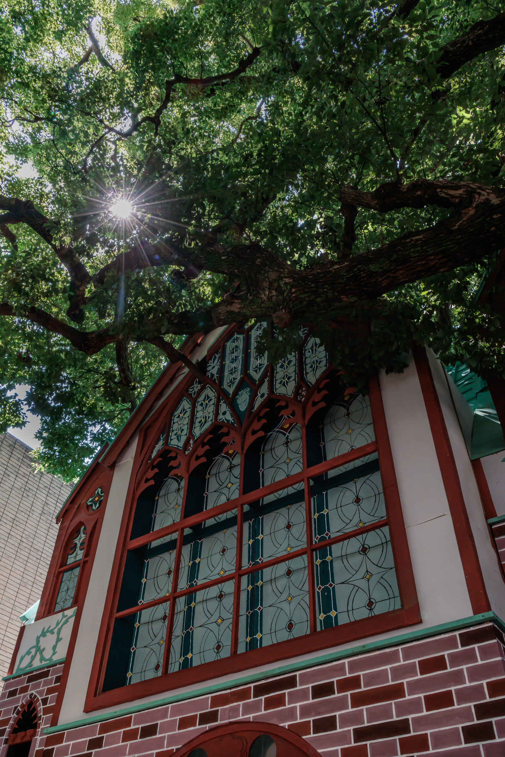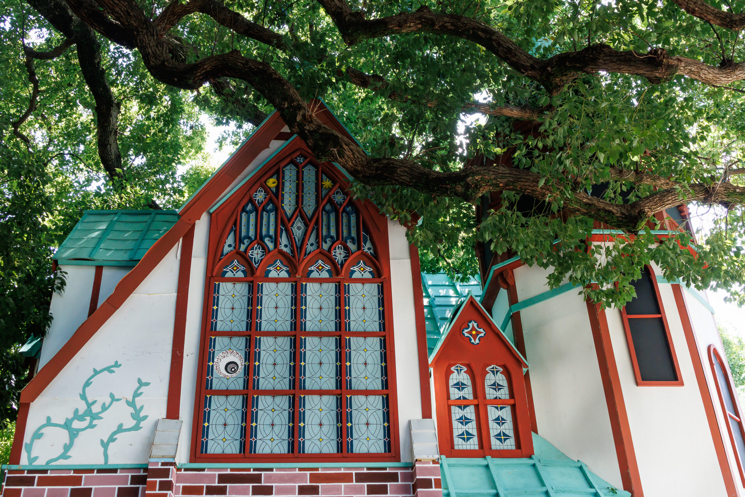 3種の小窓と中央の巨大な窓、入り口のアーチに力を入れました。