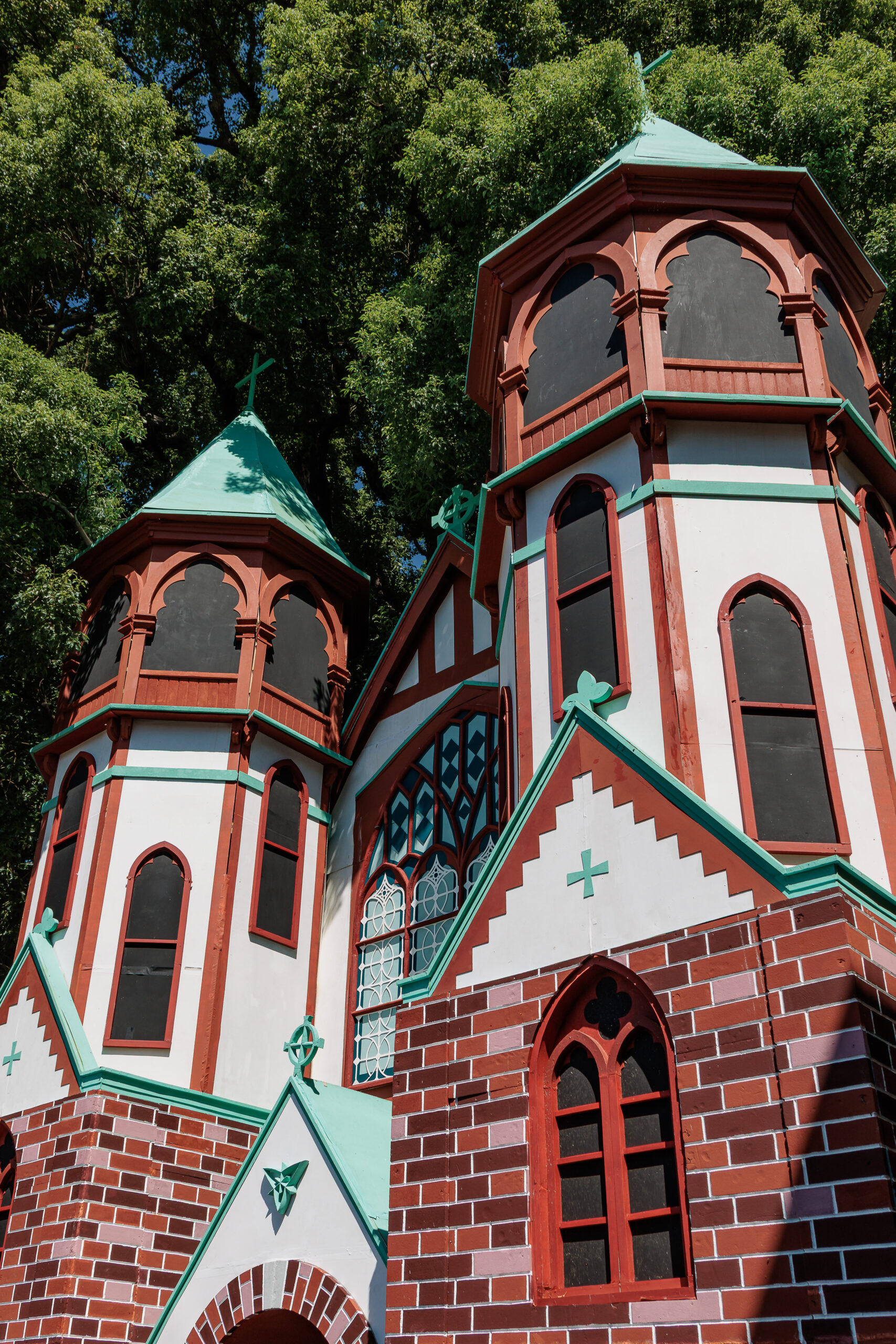 中世ヨーロッパのロマネスク様式をベースに、細部にゴシックのデザインをまじえた外観が特徴です。