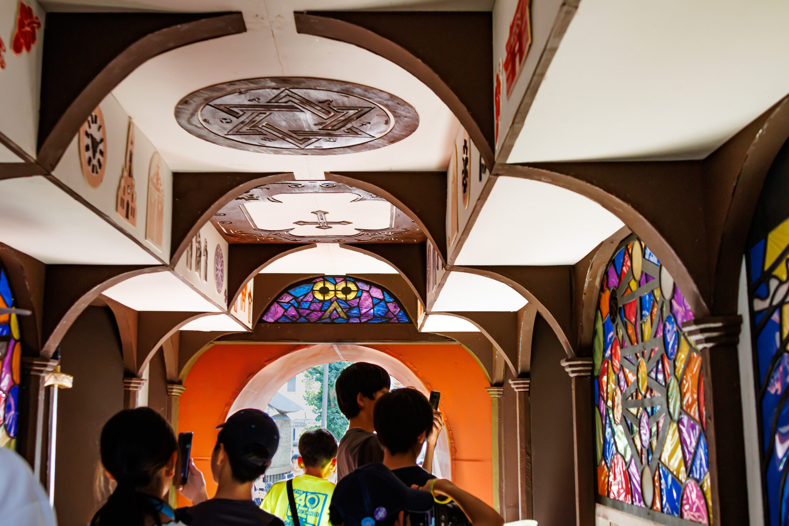 班員全員が協力して作り上げる尖塔、レンガ、大小たくさんの窓に注目しながら私たちの門をご覧いただきたいです。