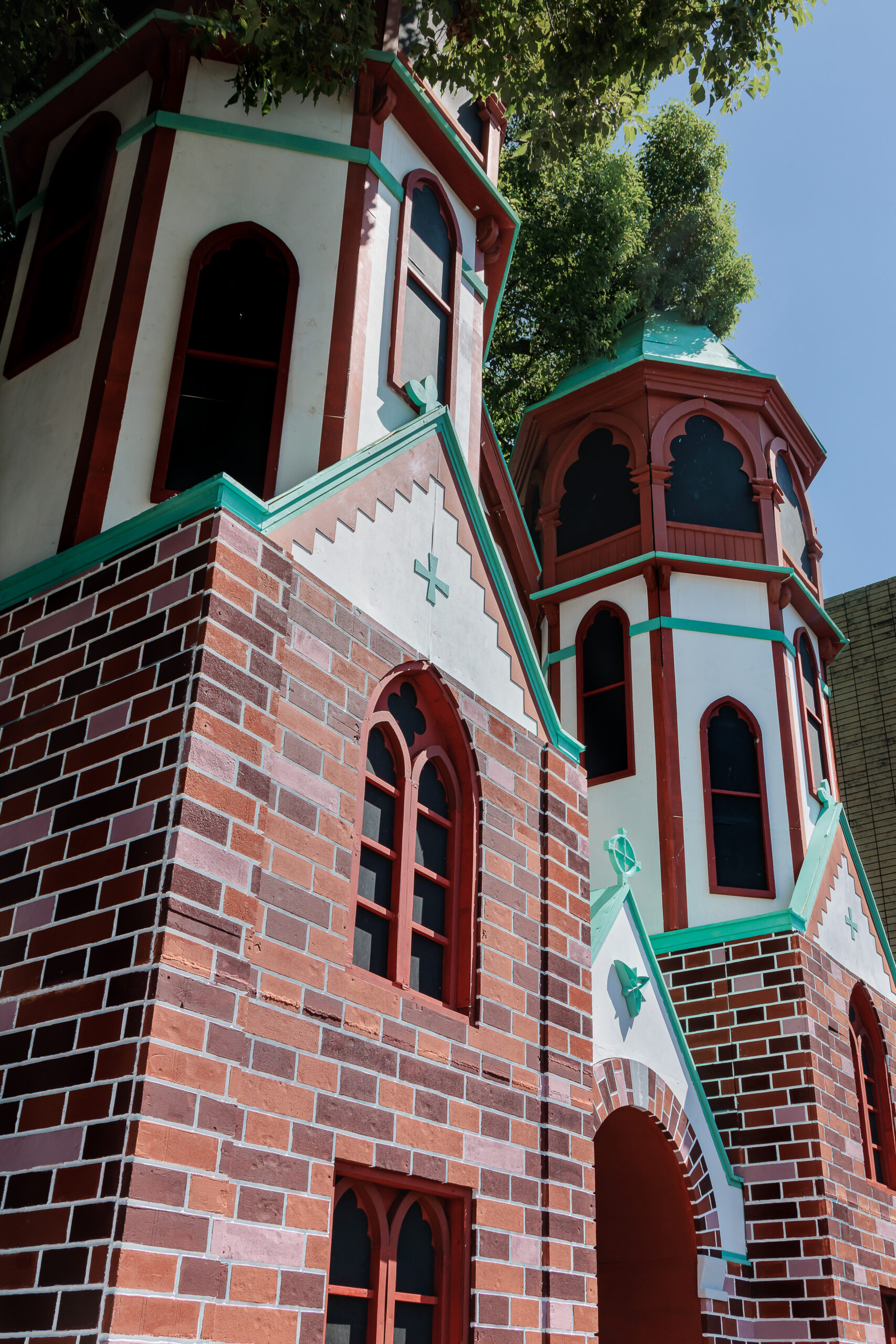 前面班、塔班には及びませんが、側面・背面の窓やレンガも精巧です。