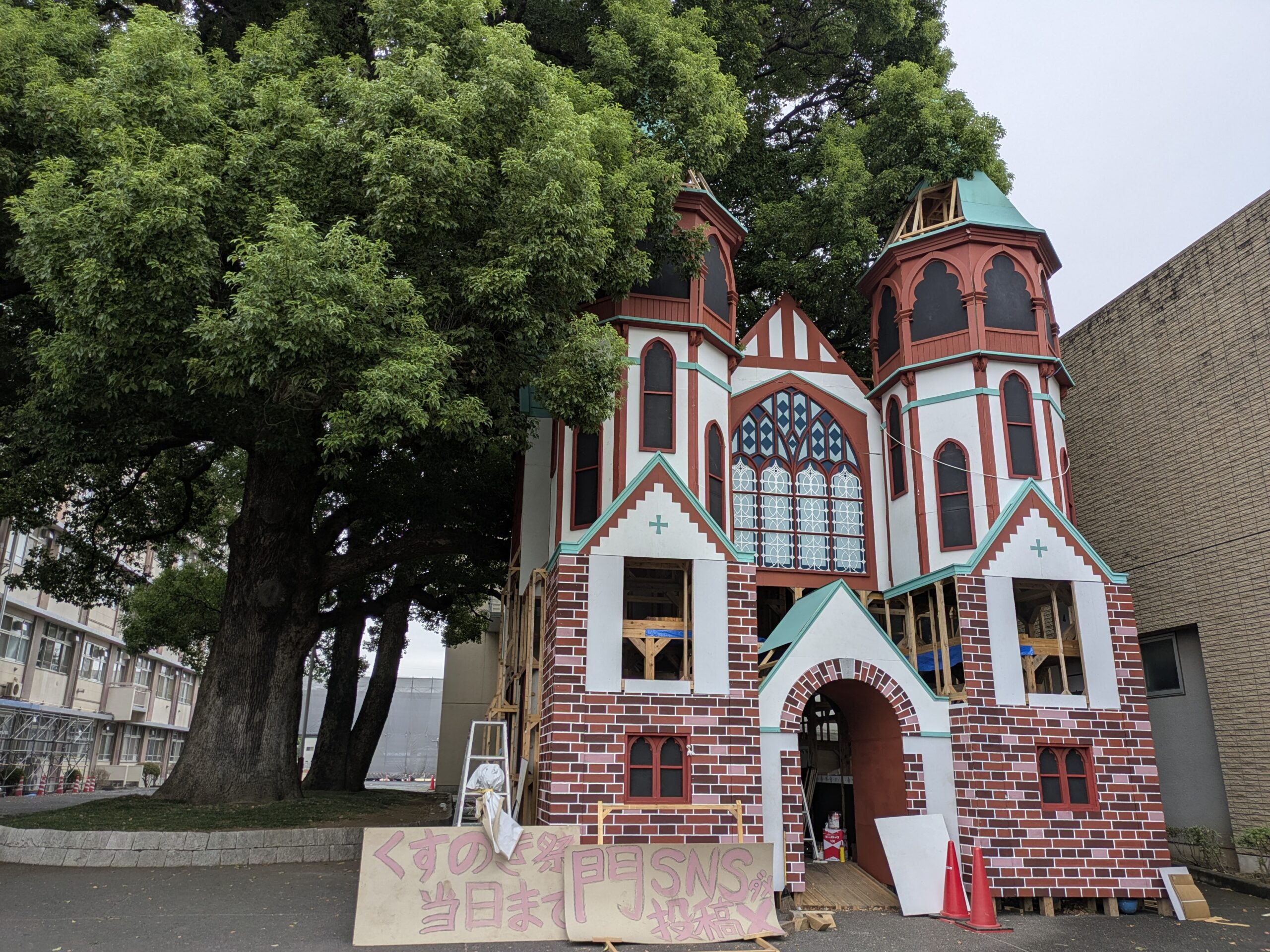 様々な洋風建築がある中で、門班員たちがこのモチーフで門を作りたいと思ったのは手前にある大きな二つの尖塔に惹かれたからです。